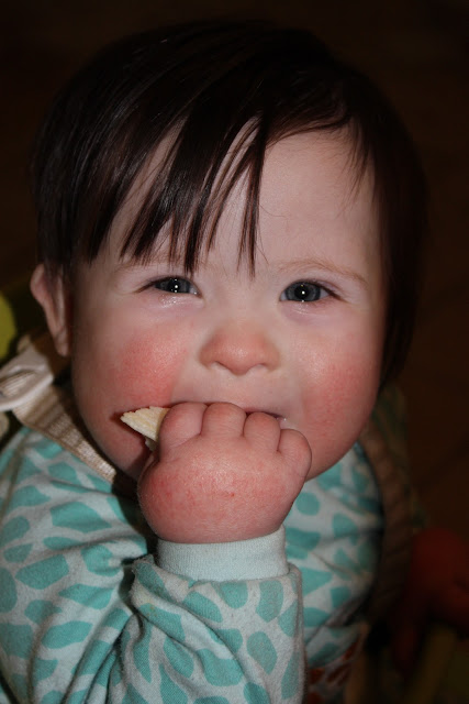 After our visit with Ashlee our IDP practicum student this week I decided that I would try a baby Mum Mum cracker... The following happened...